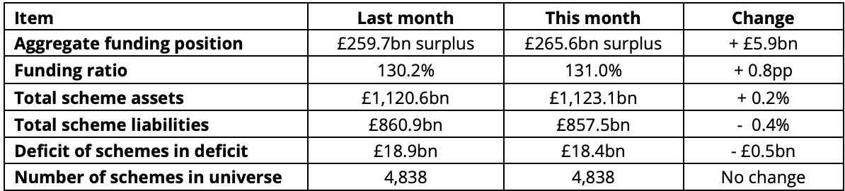The aggregate surplus of DB pension schemes climbed to £265.6bn at the end of January, according to the latest Pension Protection Fund (PPF) 7800 Index.